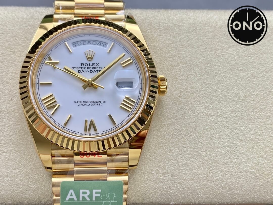 Home Rolex Day Date ONO ARF Rolex Day-Date 228238 Swiss 3255 40mm White Dial 18k Yellow Gold Case Gain Weight