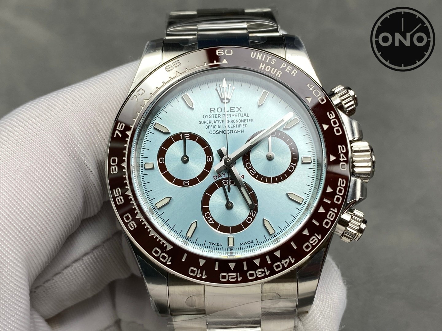 ONO BTF Rolex Daytona 126506 Swiss 4131 40mm Ice Blue Dial 904L SS Case Gain Weight